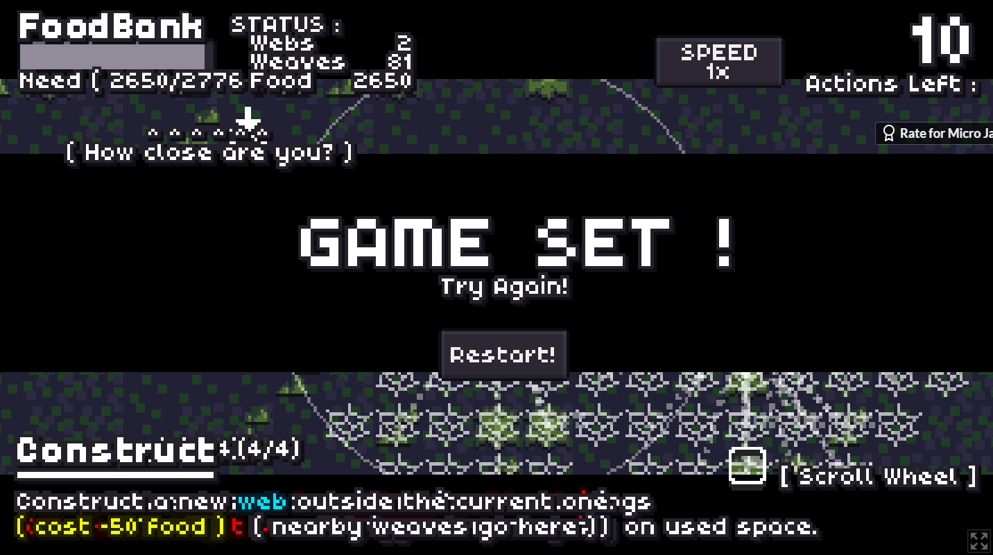 You click to setup webs and weaves with 4 abilities at your disposal, try to fill the foodbank before you run out of time!
